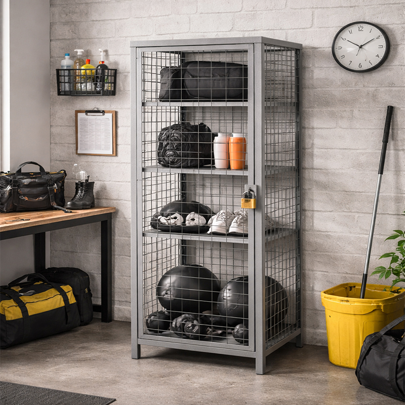 A mesh locker, also known as a wire mesh locker, is a type of storage locker that is constructed using wire mesh panels. These lockers are designed to provide storage space while allowing ventilation and visibility. The wire mesh construction provides security, durability, and customization options. Mesh lockers are commonly used in various settings such as gyms, schools, warehouses, industrial facilities, and other places where secure storage with airflow is required.