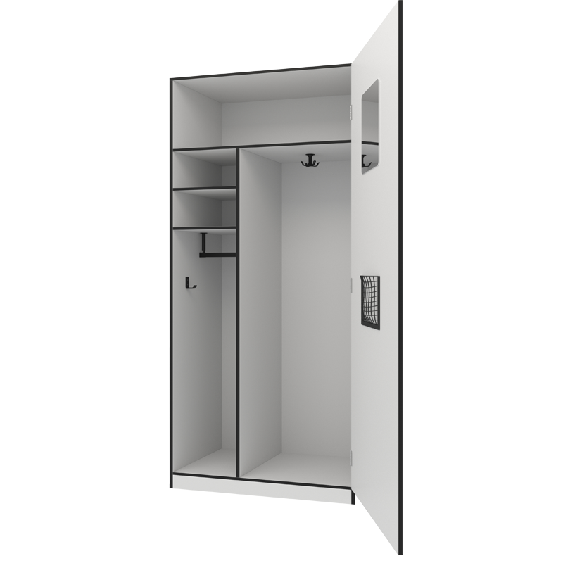 User-Friendly Door Design: The door includes a mesh pocket and a small mirror, adding practicality for storing small items and personal grooming.