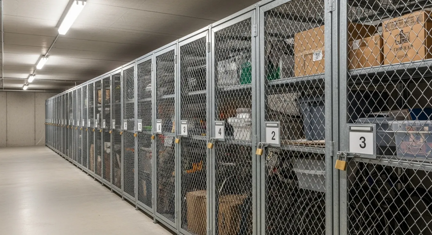Tenant storage rooms are one of the fastest-growing applications for mesh cage lockers. Developers install cage units in basement or parking-level storage areas, where each resident receives a private, lockable compartment.