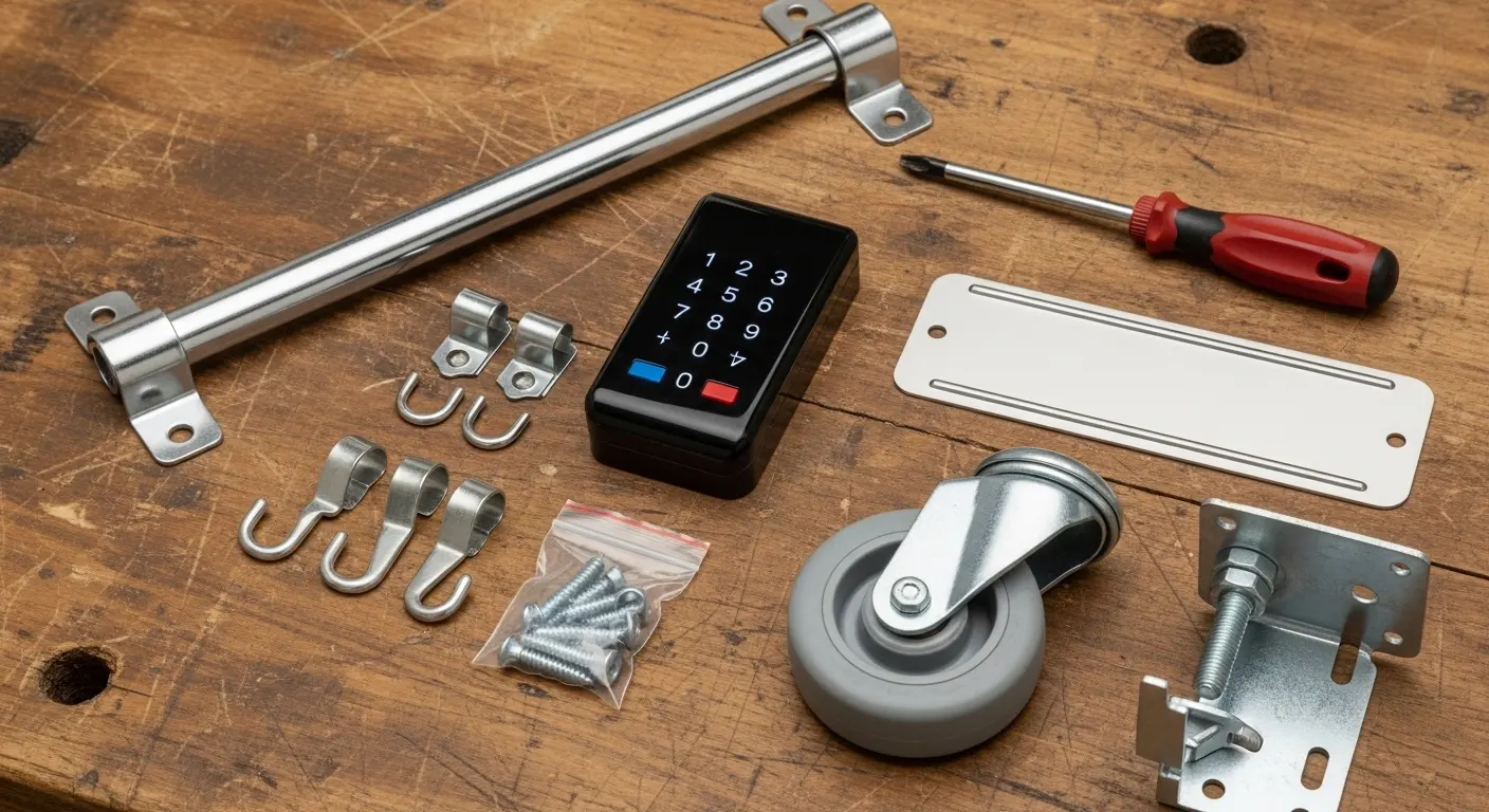 - Organizational Hardware: Shelves, dividers, and bins.