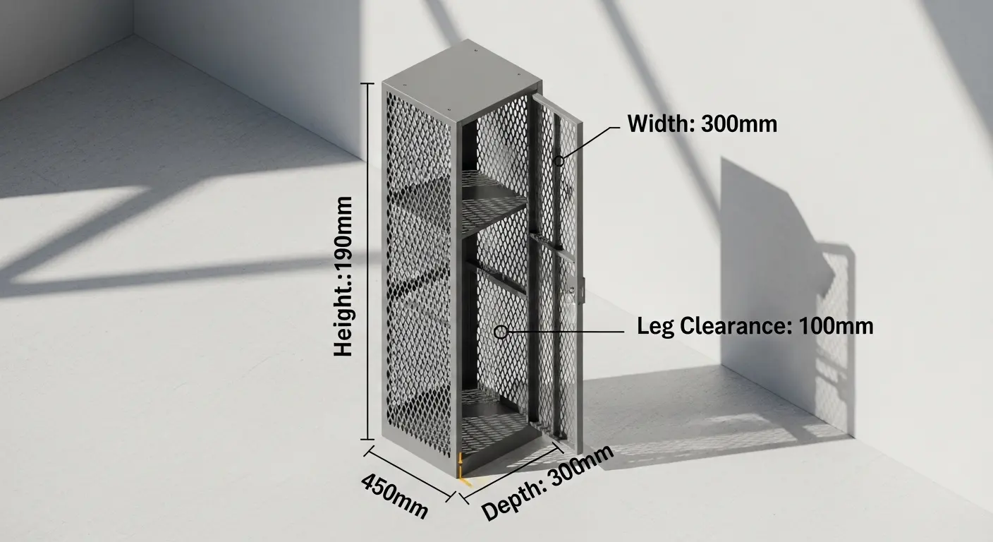 I always recommend checking the "internal clear opening" dimensions. Sometimes, the frame of the locker takes up 20mm on each side. If you have an item that is exactly 300mm wide, it might not fit through the door of a 305mm wide locker. Always leave a "buffer" of at least 25mm for easy access.
