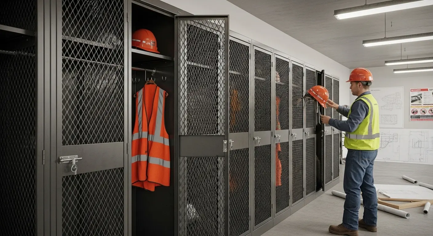 When dealing with mesh lockers for construction sites, you cannot use "office-sized" units. A worker’s hard hat, heavy boots, and high-vis jacket require volume. I recommend a minimum width of 380mm and a depth of 450mm.