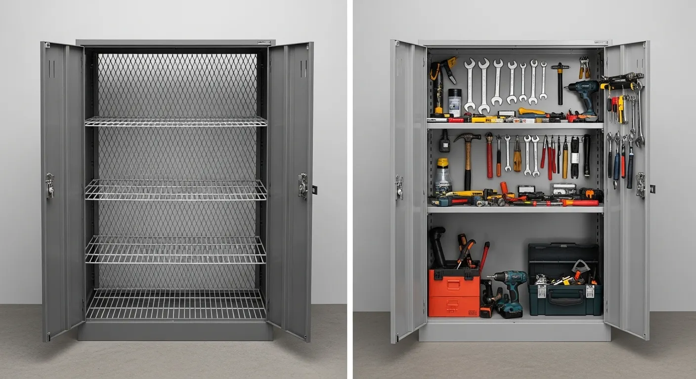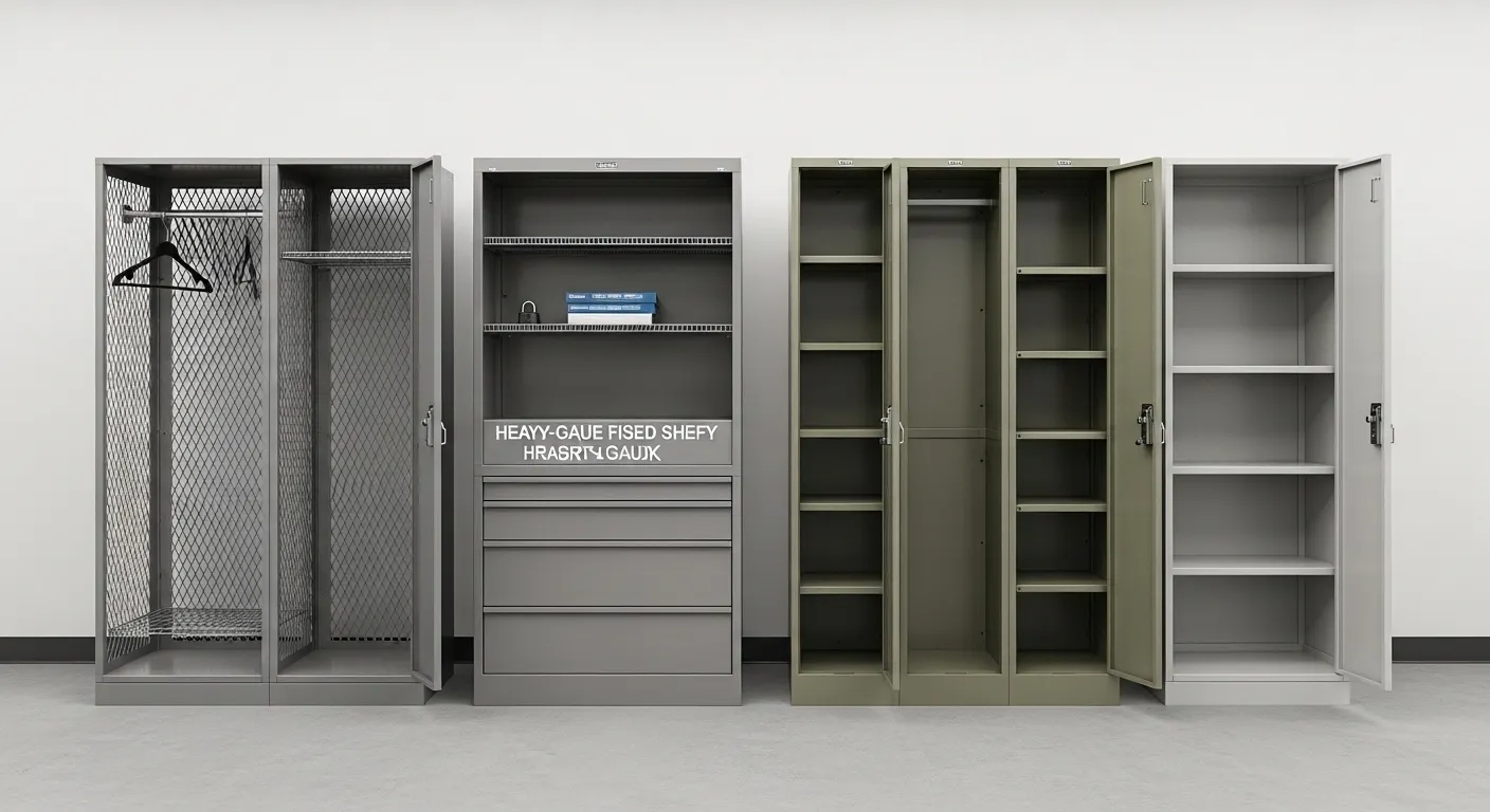 Wire mesh shelves suit ventilation-critical environments. Solid steel shelves suit heavy-load industrial applications. Adjustable shelves serve multi-use facilities where stored items vary in size and type.
